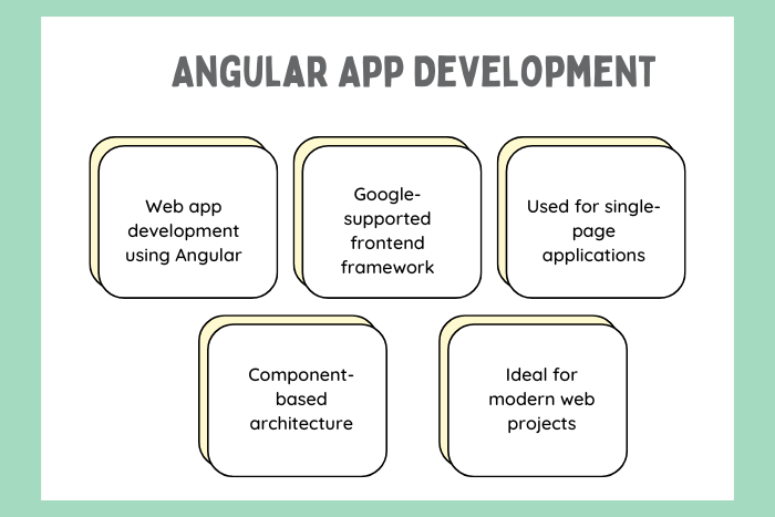Angular app development involves building web and mobile applications using the Angular framework, known for its component-based architecture and scalability.