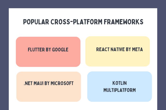 Popular frameworks include Flutter, React Native, and .NET MAUI.