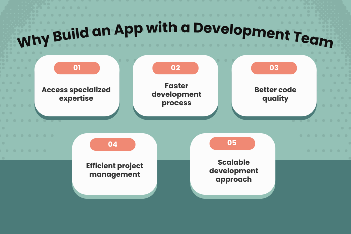 Developing an application with a team of developers helps ensure efficiency, quality, and scalability throughout the project lifecycle.