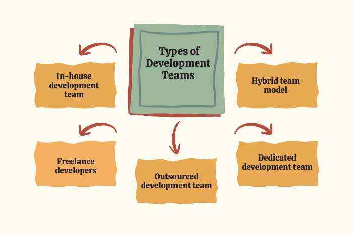 There are different ways businesses can assemble a development team depending on their needs and resources.