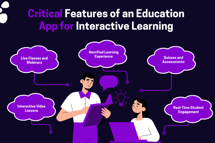- Education apps should include interactive learning tools such as video lectures, quizzes, and multimedia content to improve student engagement.