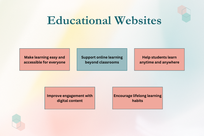 - Educational websites make learning easy, flexible, and accessible for all age groups.