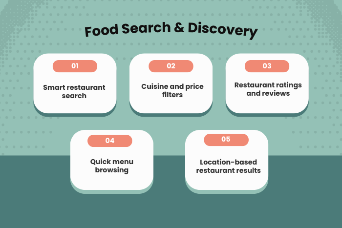 - Smart restaurant search and filters help users quickly find food based on cuisine, ratings, location, and price.