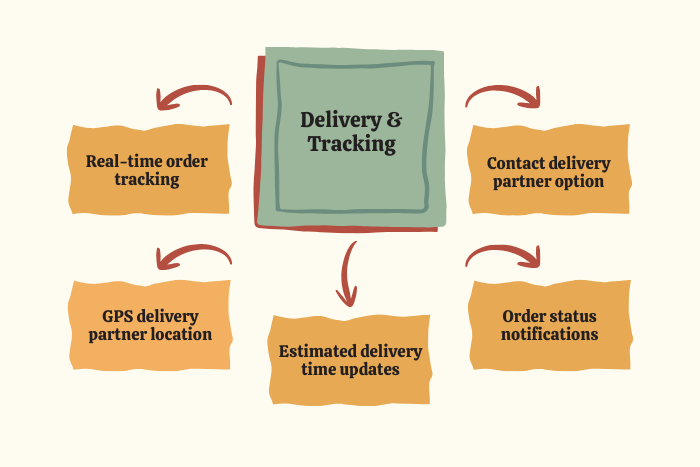 These features ensure that customers, restaurants, and delivery partners can interact seamlessly within the food ordering ecosystem.
