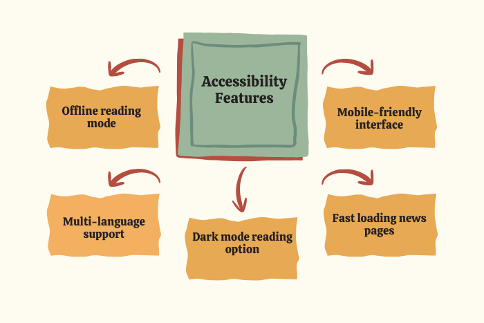 - Offline reading mode enables users to download articles and read them without an internet connection.