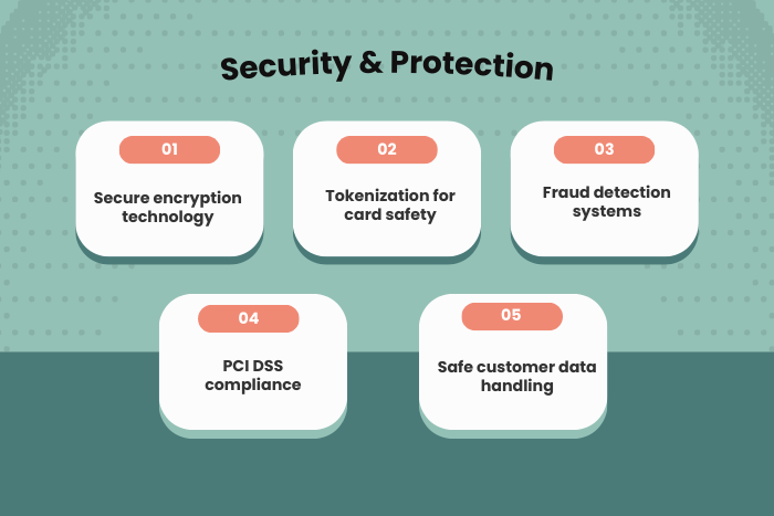 Built-in fraud detection systems help prevent unauthorized transactions.PCI DSS Compliance