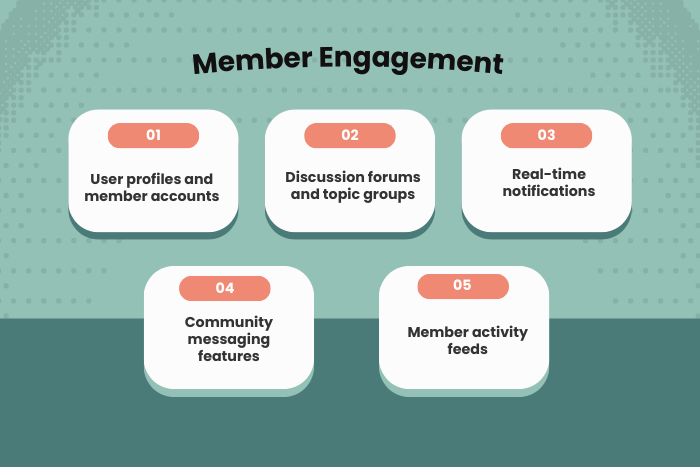 - User profiles and member accounts help personalize the experience and allow members to build identities within the community.