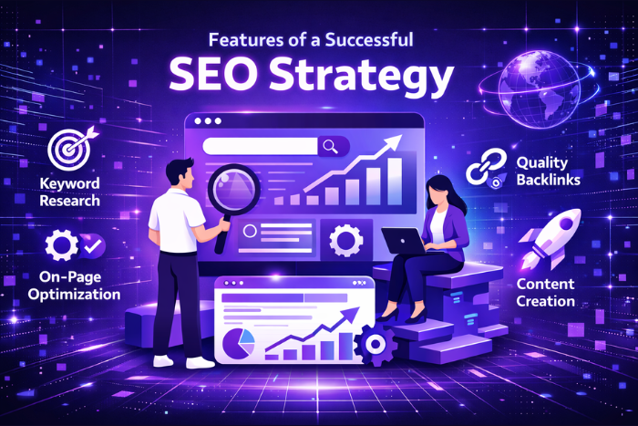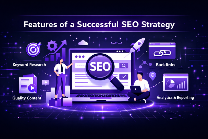 Learn the key features of a successful SEO strategy including keyword research, content optimization, technical SEO, and analytics to improve rankings.
