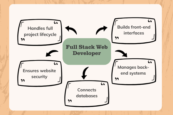 A Full Stack Web Developer handles both front-end (client-side) and back-end (server-side) development, including databases and APIs.