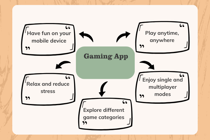 - A gaming app allows users to play games anytime and anywhere on their mobile devices.