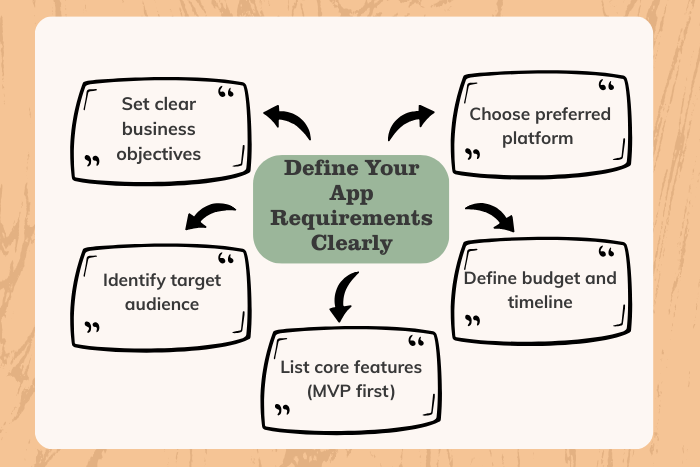 - Clearly define your app goals, features, and budget before approaching companies.