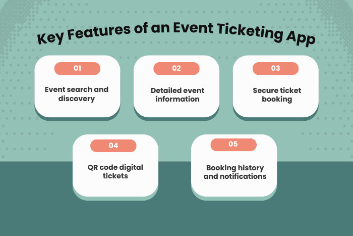 A successful ticket booking app must include features that simplify ticket purchasing and event management.