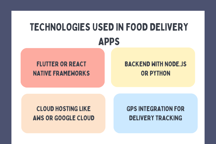 - Technologies like Flutter, React Native, Node.js, and cloud platforms are commonly used for development.