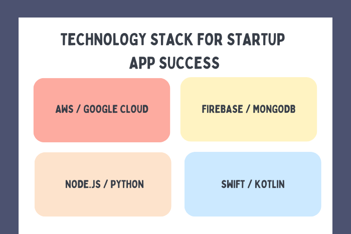 A modern startup app development tech stack includes the following components: