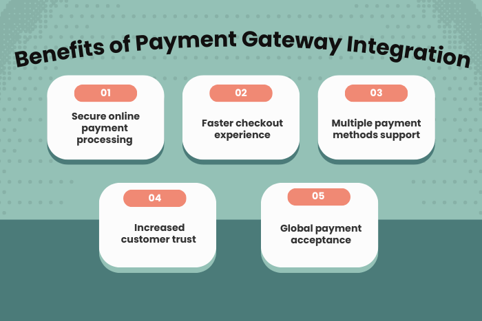 Payment gateway integration offers several advantages for businesses and customers.