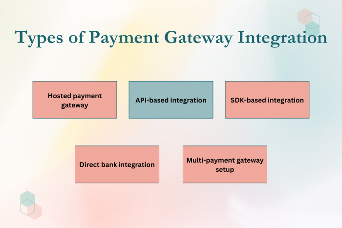 Different types of payment gateway integration methods are available depending on the application’s requirements and business model.