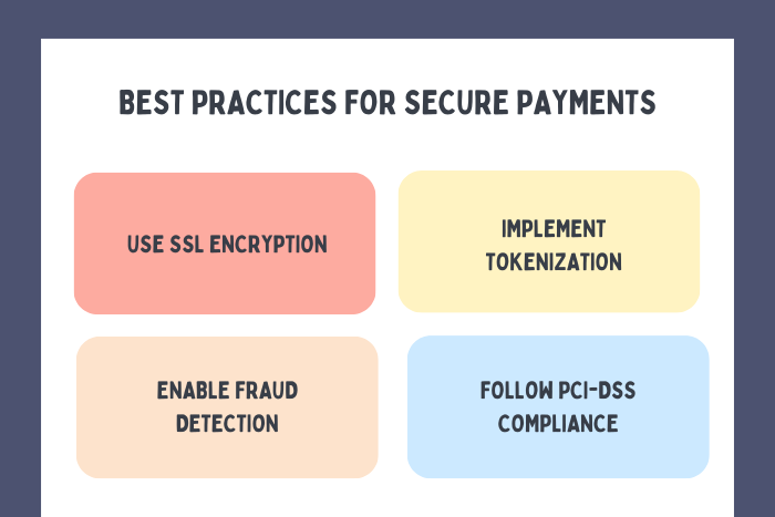 Use encryption, tokenization, and authentication mechanisms to protect financial data.Testing Payment Transactions