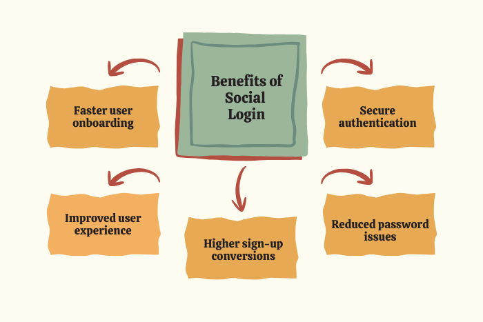 - Social login can increase user sign-up rates and engagement by reducing the need for passwords.