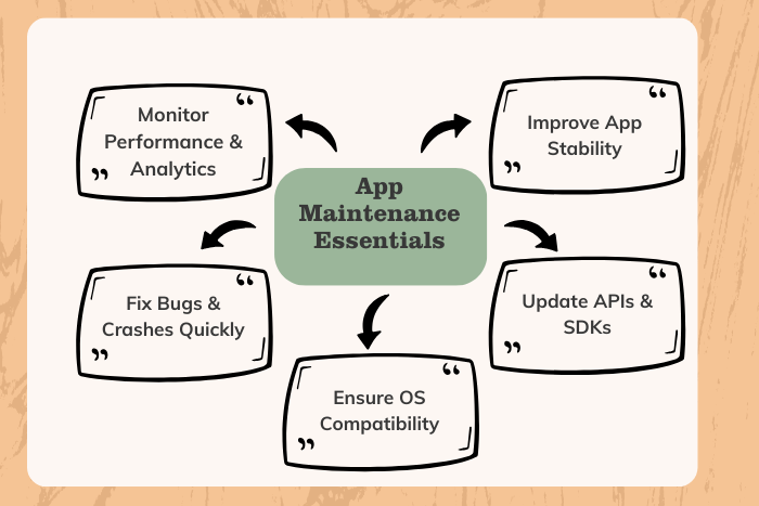 Learn how to maintain and update an app with best practices for bug fixes, security, performance optimization, and long-term scalability.