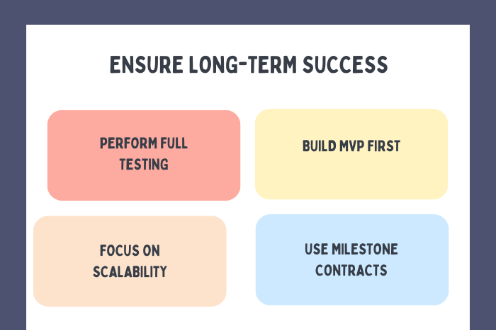 Use milestone-based payments, sign NDAs, define clear deliverables, and maintain consistent communication throughout development.