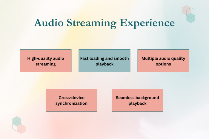 - High-quality audio streaming with adaptive bitrate ensures smooth playback across different network speeds and devices.