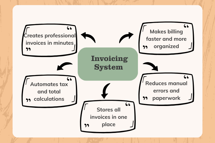- An Invoicing System automates invoice creation, helping businesses send professional invoices quickly and accurately.