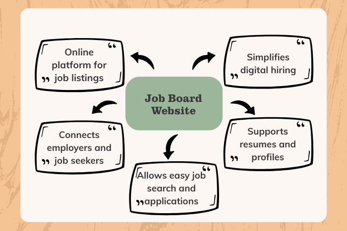 A job board website is an online platform where employers post vacancies and candidates apply for jobs.
