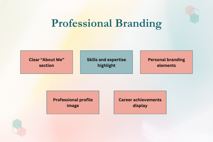 Focuses on professional identity, achievements, and career highlights.