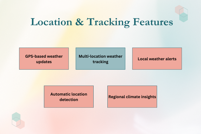 - Location-based weather tracking uses GPS to automatically deliver forecasts for the user’s current area.