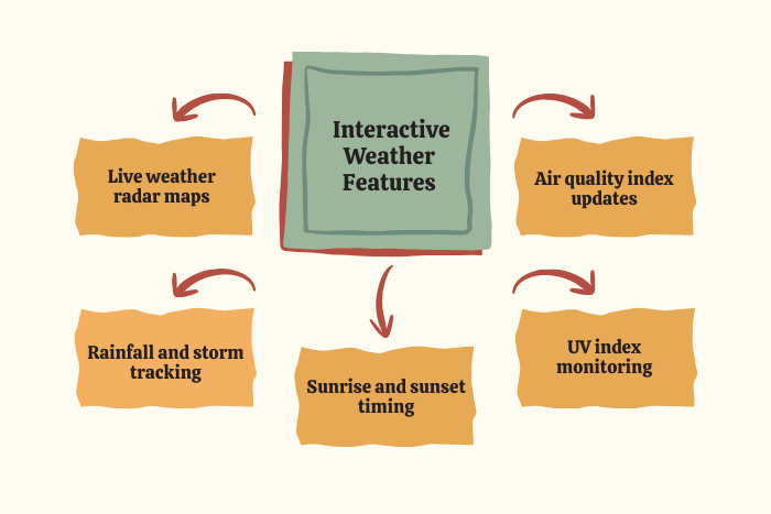 - Interactive weather radar maps help users visualize storms, rainfall, and climate patterns in real time.