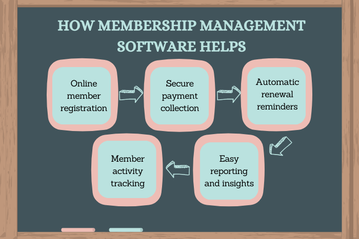 - Membership Administration Software provides reports and insights to track growth and engagement.