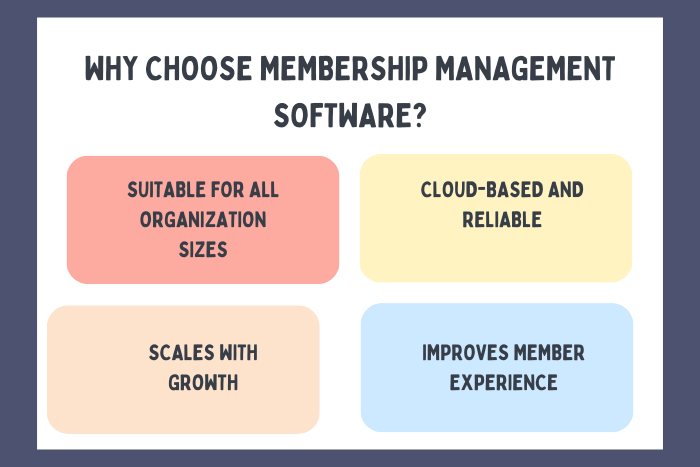- Membership Management Software helps organizations manage member data by storing profiles, plans, and activity in one system.