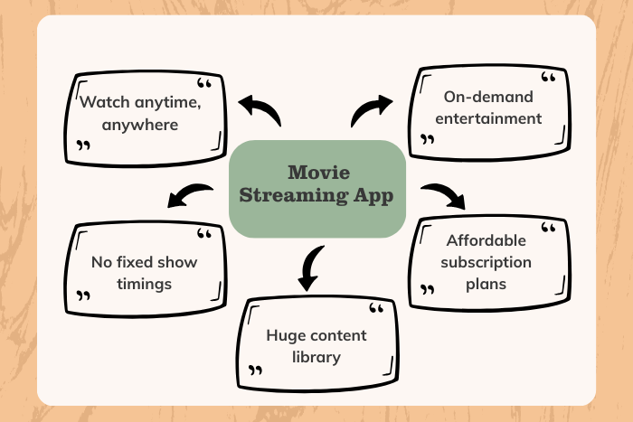 - A movie streaming app allows users to watch movies and shows anytime, anywhere with internet access.