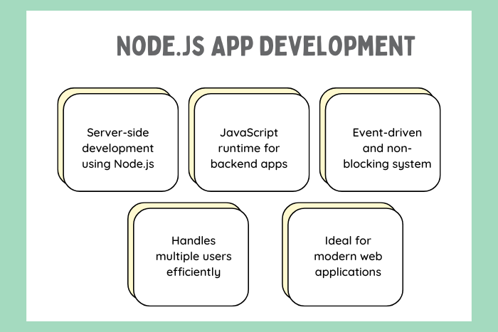 Node.js app development involves building backend systems and web applications using Node.js, known for its non-blocking and event-driven architecture.