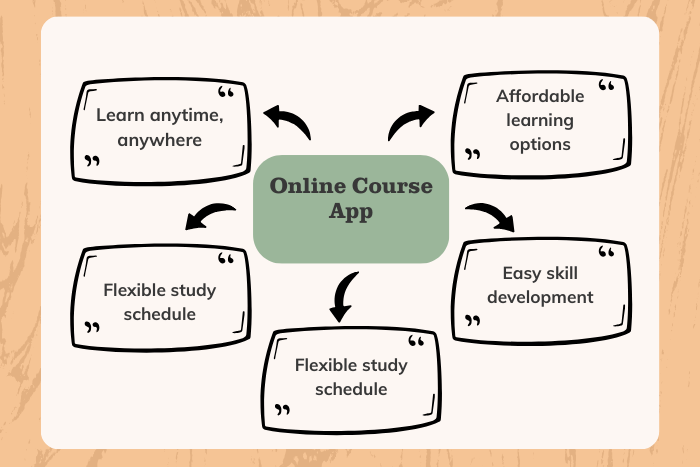 - An online course app allows users to learn anytime and anywhere with flexible schedules.