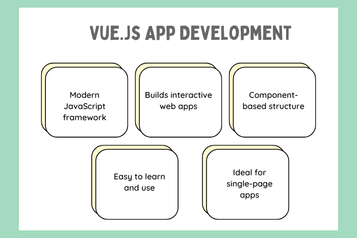 - Vue.js application development is ideal for single-page applications and dynamic interfaces
