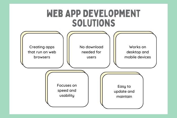- Web app development solutions help businesses build fast, secure, and scalable web applications