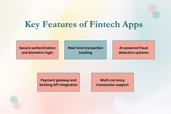 Fintech applications must include advanced features that ensure security, usability, and financial transparency.