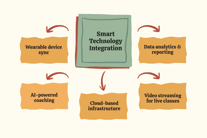 - AI-powered personalization features such as custom workout plans, biometric tracking, and predictive health insights.