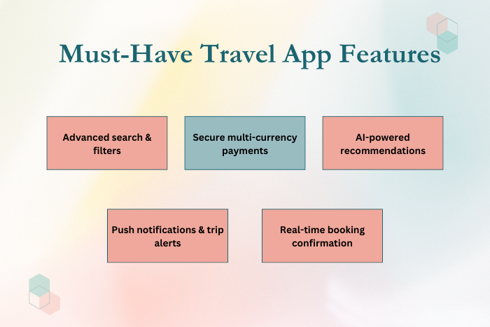 - Explore key travel app features like real-time booking, multi-currency payments, and AI recommendations.
