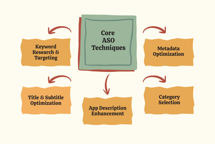 They include keyword optimization, metadata enhancement, creative improvements, review management, localization, and A/B testing.