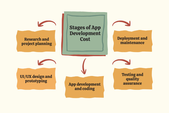 Each development stage contributes to the overall cost of building a mobile application.