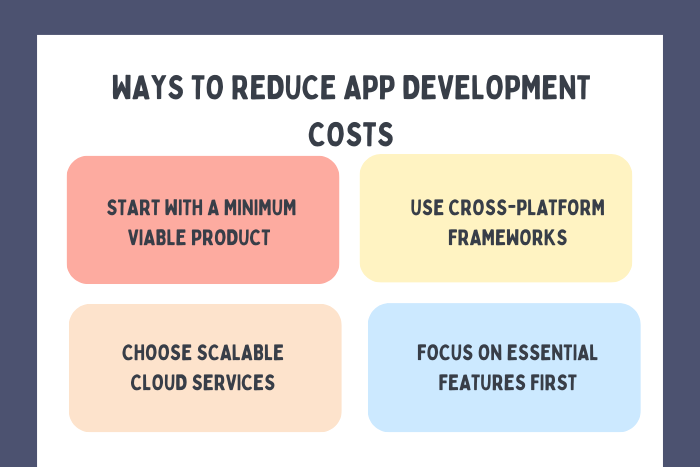 Businesses can reduce costs by prioritizing core features, using cross-platform frameworks, and adopting cloud services.