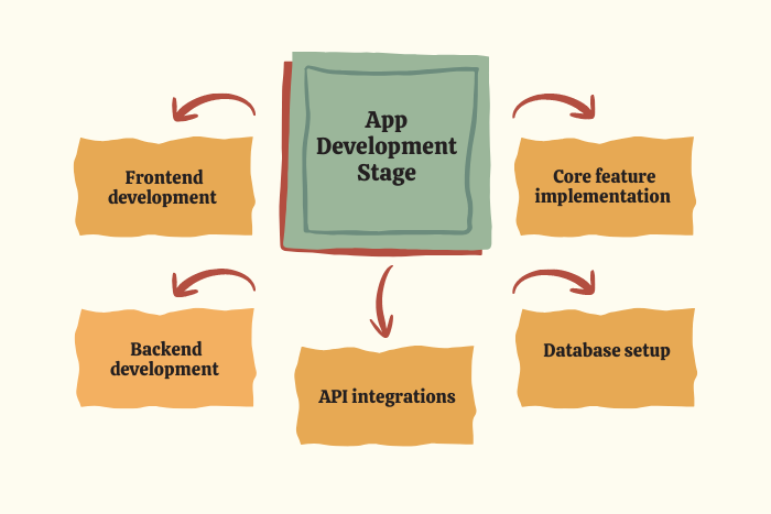 Development teams build the frontend and backend components, integrate APIs, and implement core features.