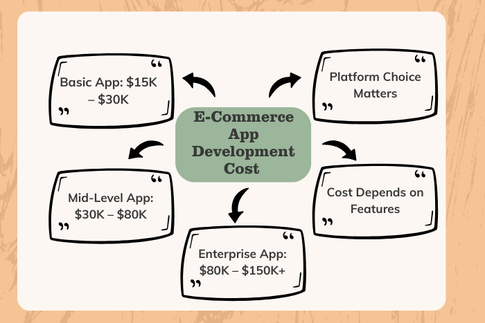 - The cost of e-commerce app development typically ranges from $15,000 to $150,000+ depending on complexity.