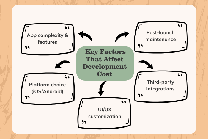 - Platform choice (iOS, Android, or both) significantly affects development cost.